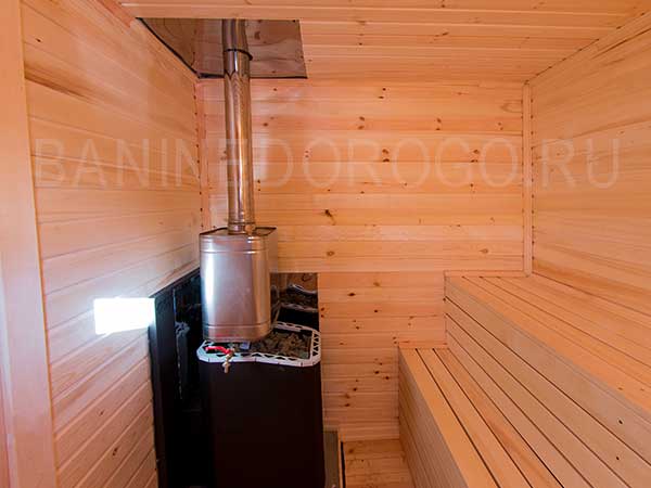 Печь, бак для горячей воды объемом 60 литров входит в стоимость бани